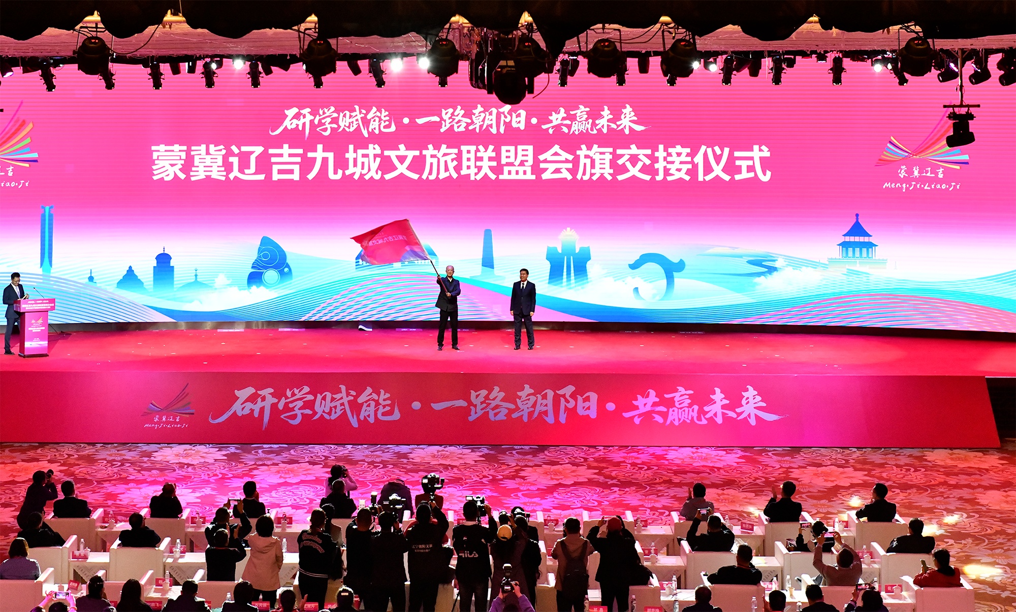 蒙冀辽吉九城文旅联盟第四次会议,对2024—2025年九城联盟合作成果进行了总结,系统梳理了九城在文旅资源互推、客源市场共享、品牌联合宣传等方面的务实举措与成效;分享了在客源市场开拓、研学旅游开发、线路打造等领域的好经验、好做法,并围绕下一步如何深化联盟合作、拓展文旅新业态、强化研学资源整合等议题展开深入交流,通过进一步深化蒙冀辽吉四省区文旅协作,推进文旅产业协同高质量发展。会上,文旅联盟上下届会议举办地进行了会旗交接,下一届会议将在辽宁省阜新市举办。
